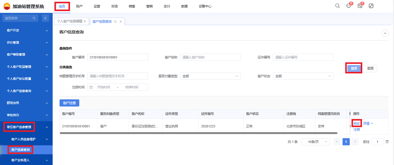 1.11问题:修改单位客户证件编号时提示“新证件号已被其他单位使用,证件号修改失败”或修改单位信息时提示“证件号被多个单位使用,请修改证件号”