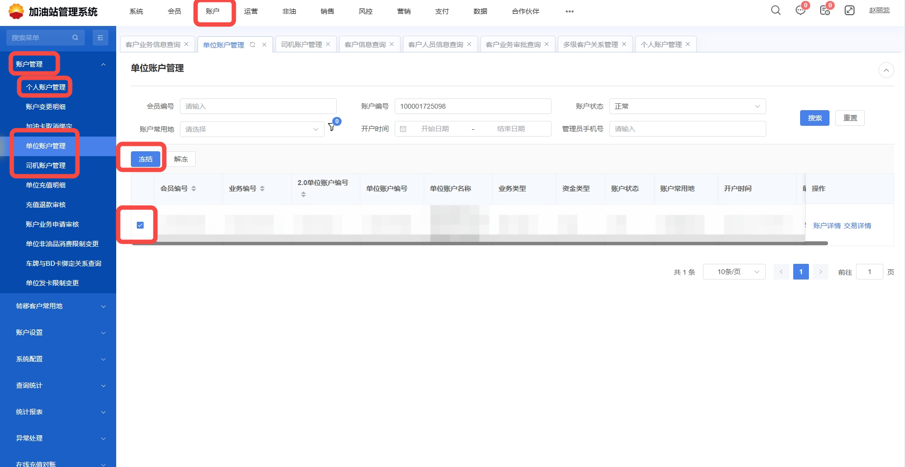 2.4 问题:油站操作员不会办理单位油卡账户冻结解冻业务