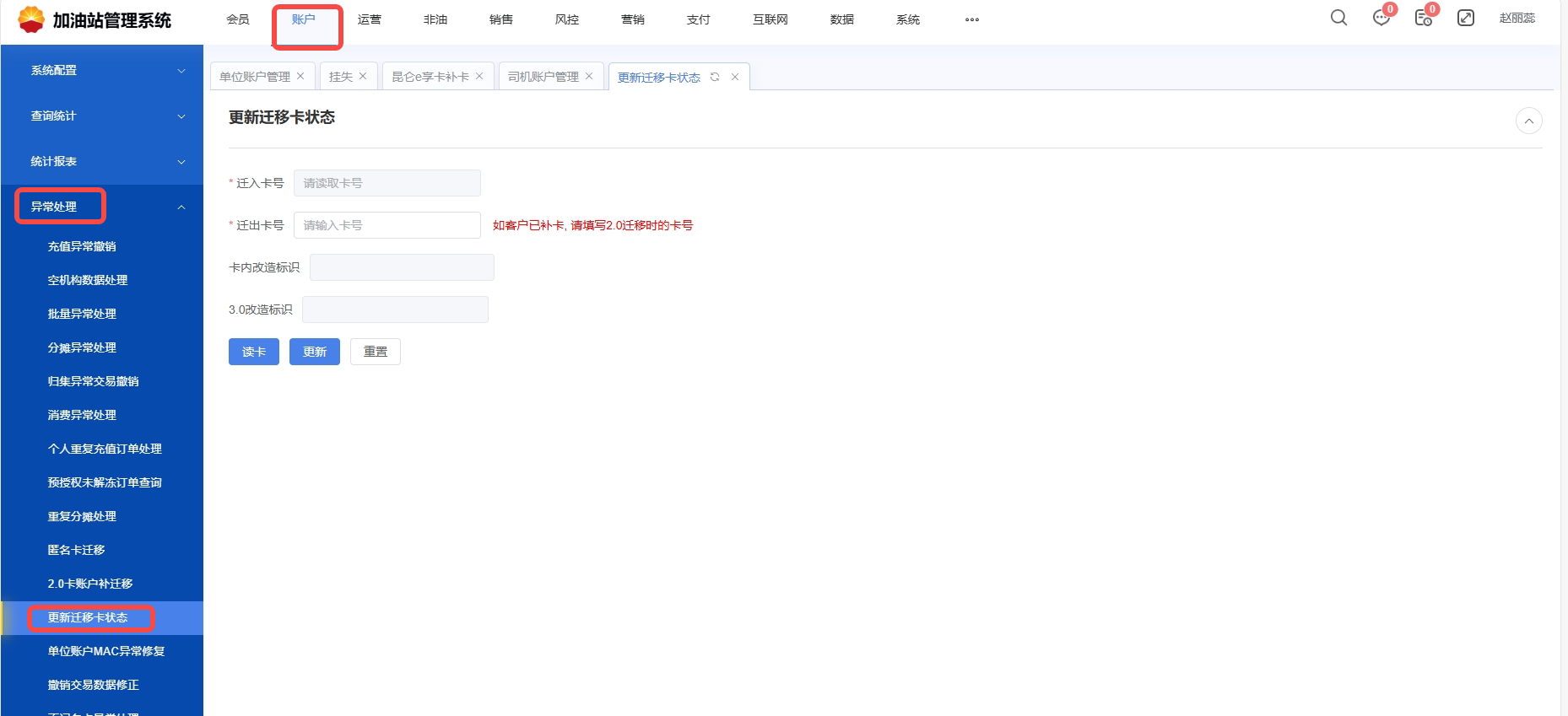 2.24 问题:加油站操作员不知道2.0卡客户信息如何变更