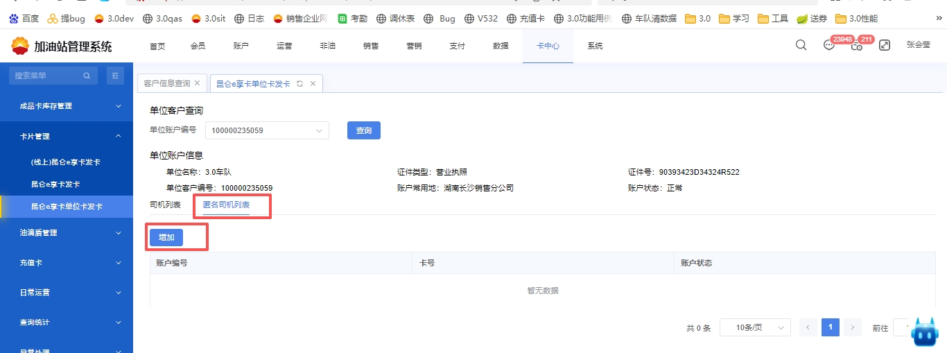 **处理方案:**新增单位账户售匿名司机卡(实体卡)功能,功能路径:卡中心\-昆仑 e 享卡单位卡发卡\-选择匿名司机列表,增加匿名司机并售卡。 会员账户支付角色\-总部地区地市通用角色;**地市公司**需要把是否允许售匿名卡的开关打开。打开后该单位才可售匿名司机卡,目前暂不支持记名卡售卡。