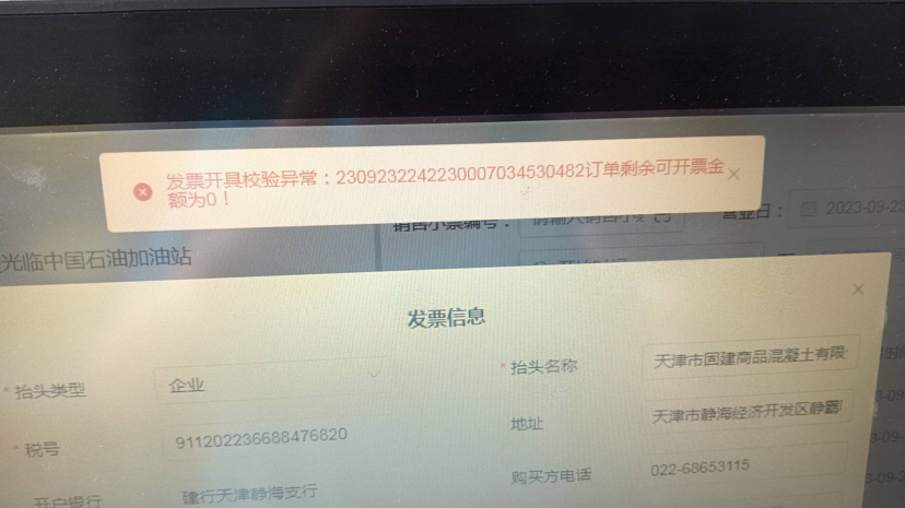 APP开票报错:提示发票开具服务(蓝票)异常:订单预处理失败错误码:B_B20_400000
