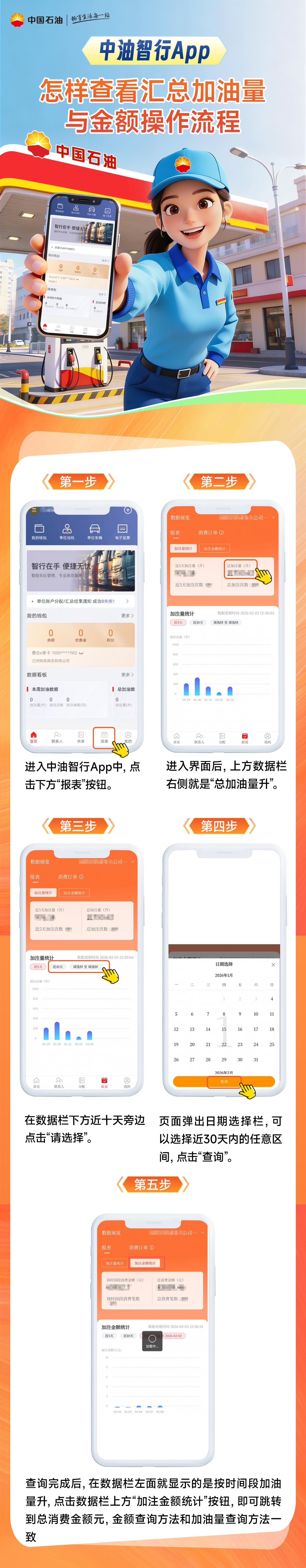 6.中油智行APP怎样查看汇总加油量与金额操作流程