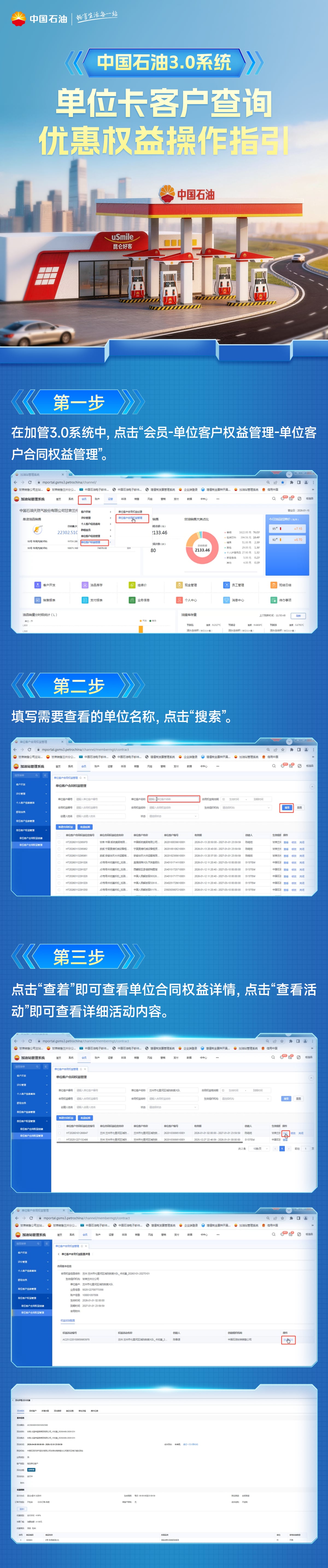 目前只有“单位客户权益管理”模块能看到自己绑定过的优惠记录,其余没有地方可以查到客户已绑定的合同信息(包括合同内容、有效期等)