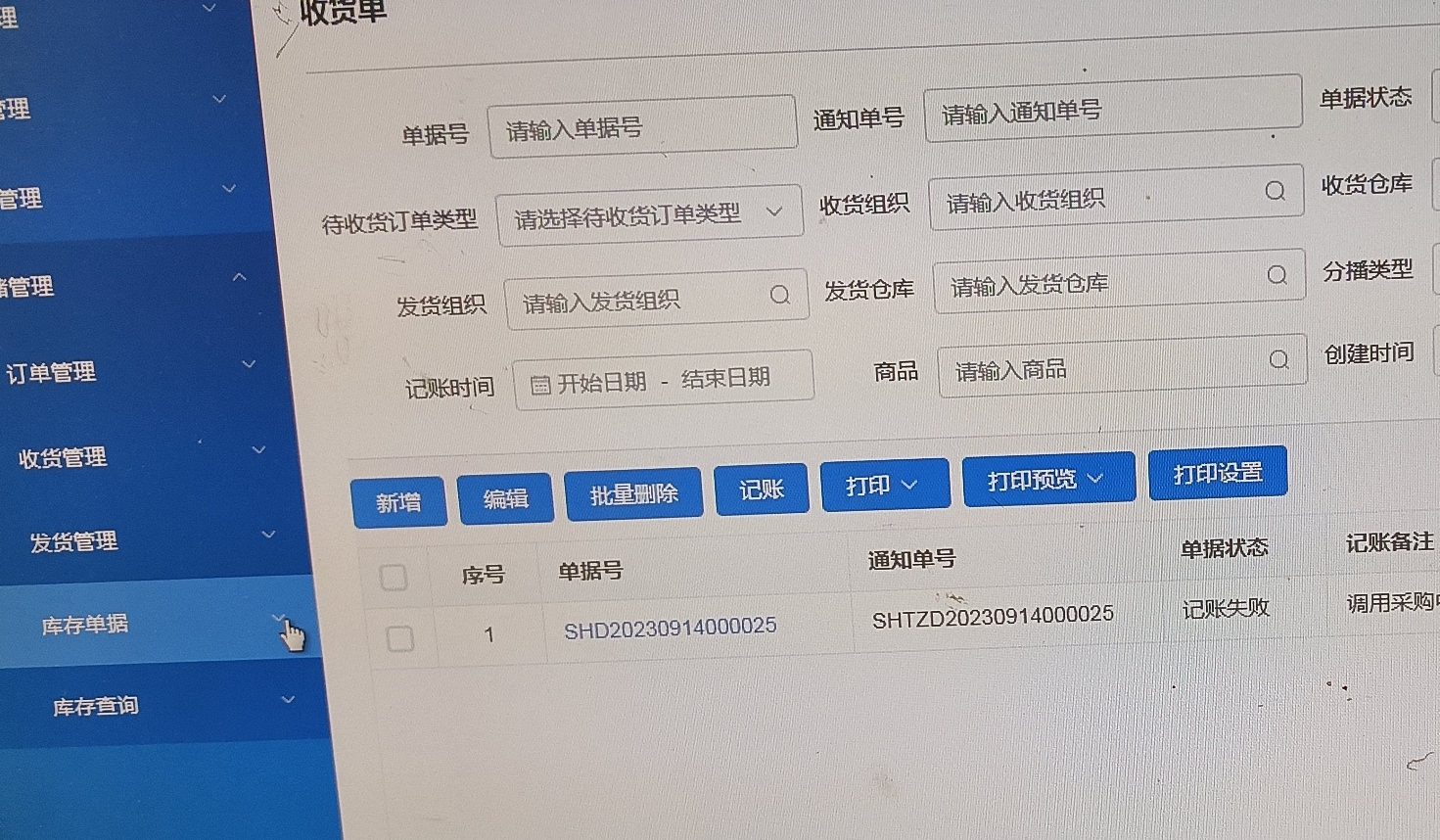 2、后台收货单中与实际纸质收货单种类不一致,多出商品。