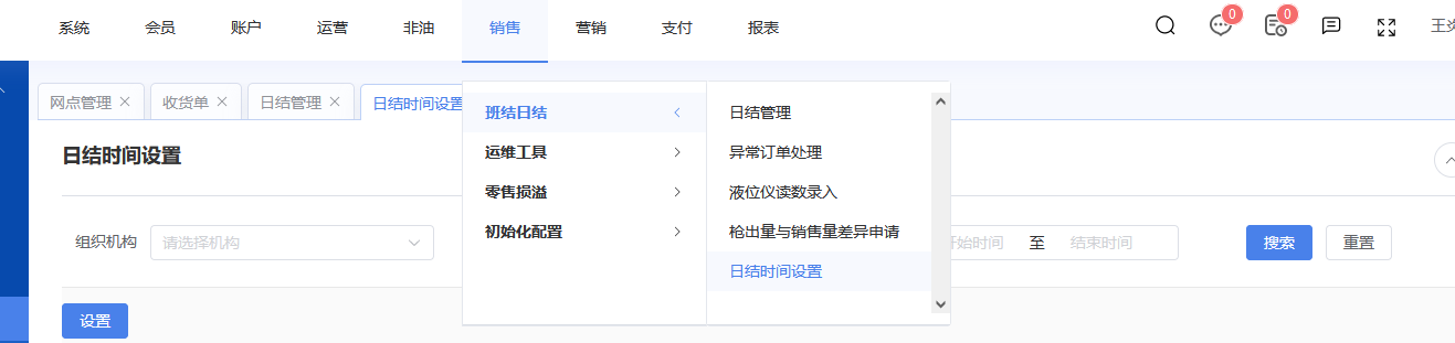 例如:现在是 10 月 25 日 10:00,正确应该是所属营业日为 10 月 25 日,但是站里现在已经产生了 10 月 26 日的营业,经查看是因为站里的日结时间点 8:00,但是站里实际日结时间点为 17:00(具体是否修改需要和地市核实)