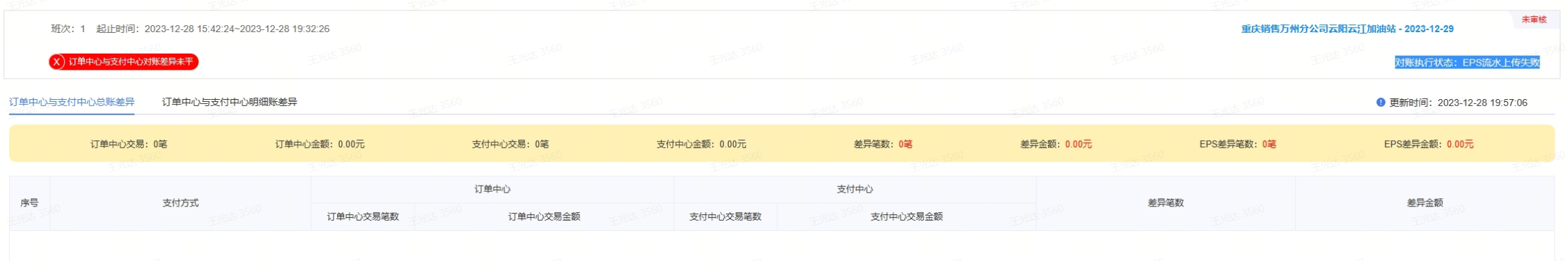 3、做日结时提示班结对账有差异,订单中心和支付中心对账差异未平