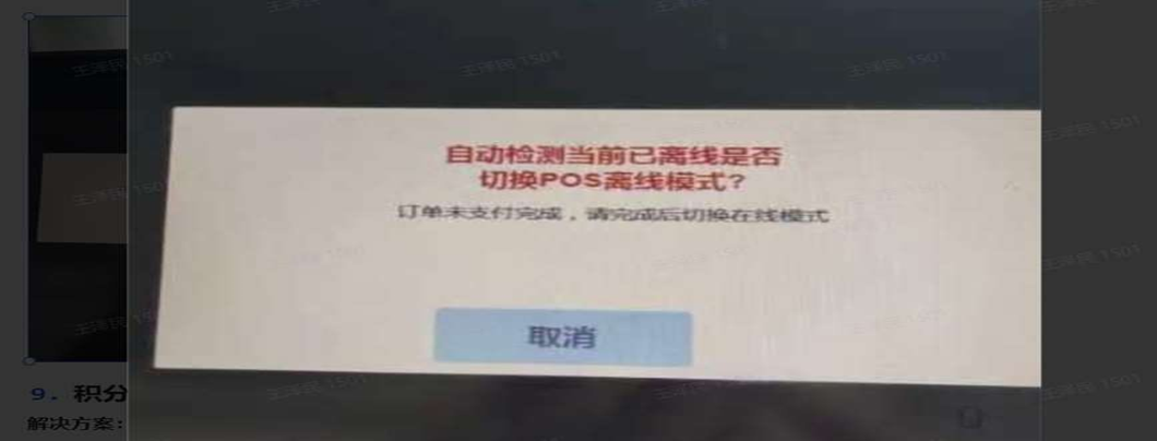 7、离线模式:前台RPOS提示“自动检测当前已离线是否切换pos离线模式?”