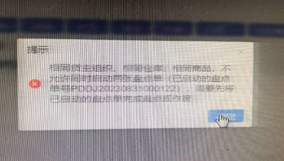1、后台盘点时提示不允许同时启动两张盘点单