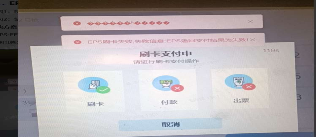 4、 前台RPOS刷卡失败,提示:EPS 返回支付结果为失败。