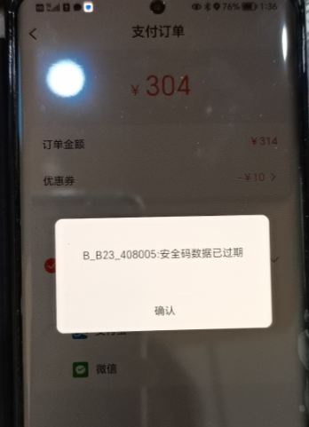 1. App/小程序支付时提示 B_B23_408005:安全码数据已过期