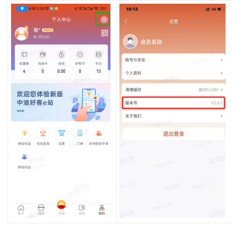 解决方案:进入 APP 后,选择“我的” 点击右上方配置按钮后,即可看到 APP 对应版本号