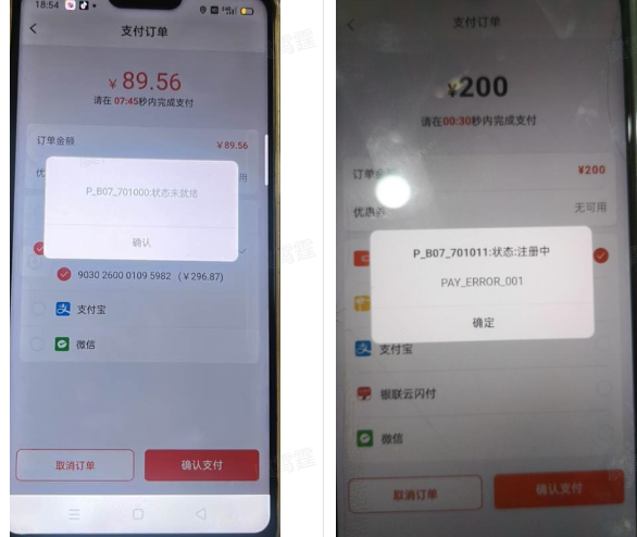 11. APP 支付时提示 P_B07_701000:状态未就绪或提示状态:注册中 PAY ERROR 001"