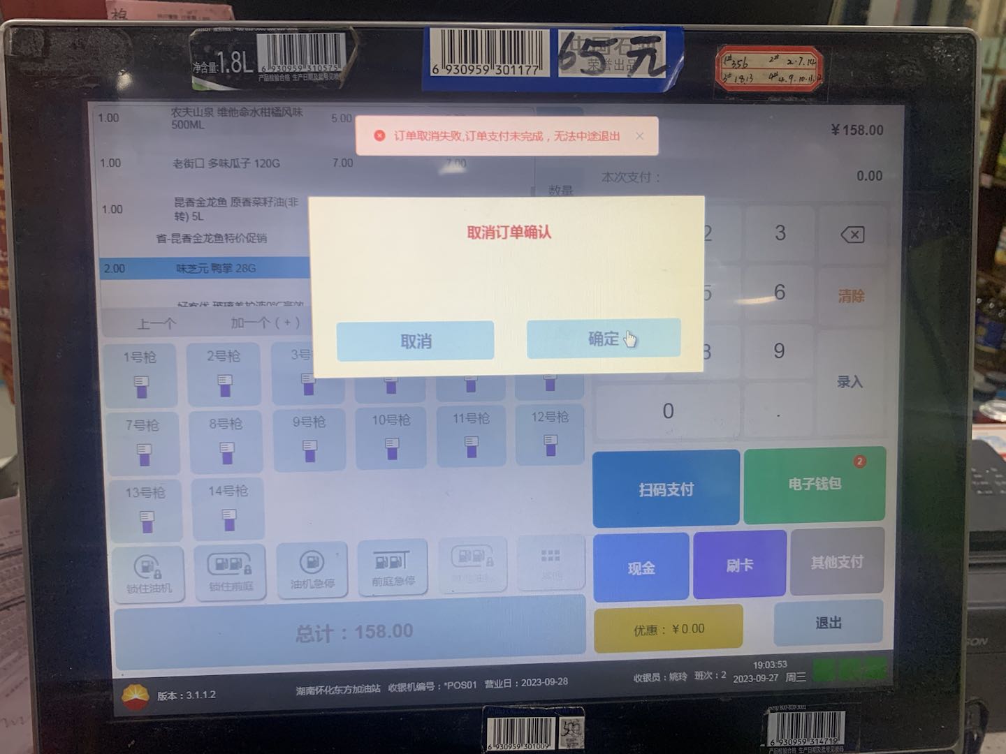 14. 非油商品顾客不想要了,没有支付无法取消订单,提示:订单取消失败,订单支付未完成,无法中途退出。