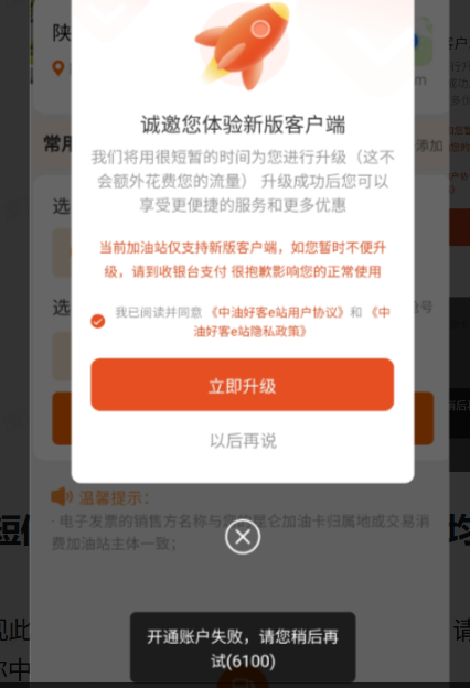 63. 升级3.0失败,提示“开通账户失败,请您稍后再试(6100)”。张晓艳
