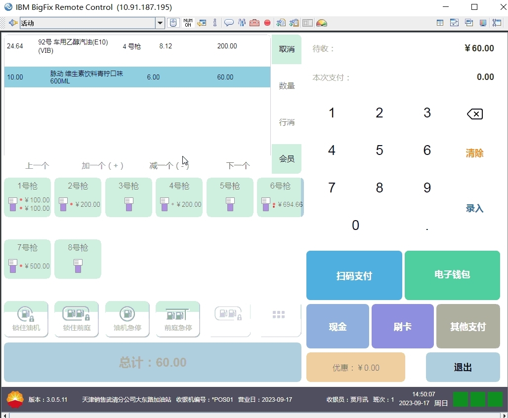 6. 加油后前台没产生点,站内不能确认具体金额。