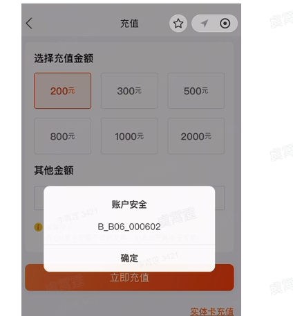 42. 充值实体卡提示卡片所属人不一致(6100)