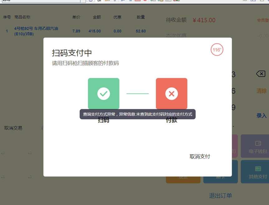 43. 前台扫微信或者支付宝报错: 查询支付方式异常,异常信息:未查到此支付码对应的支付方式