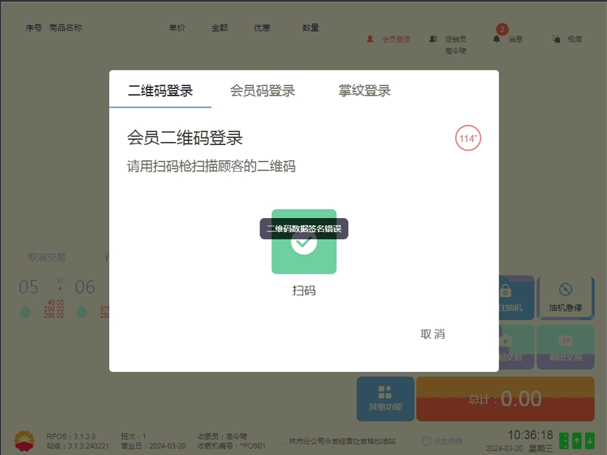 1、前台POS程序无法登录,一直转圈,无法刷新二维码。