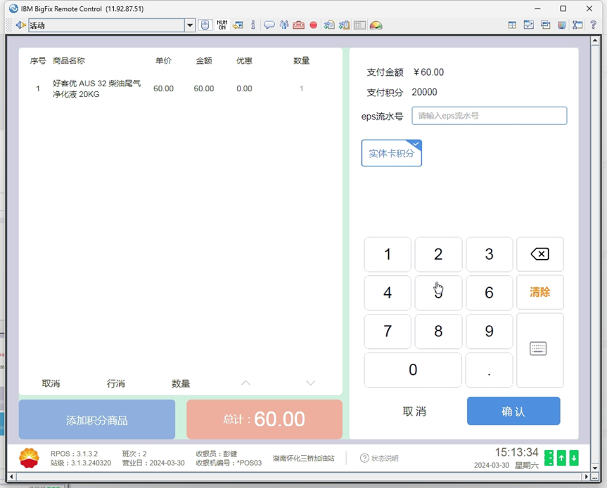 6. 加油后前台没产生点,站内不能确认具体金额。