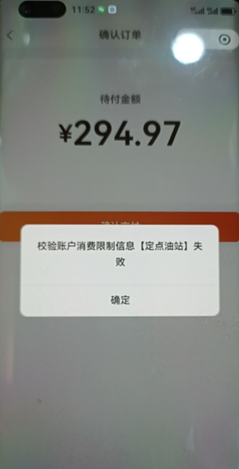 65. 中油好客E站微信小程序-e享卡支付报错“校验账户消费限制信息【定点油站】失败”