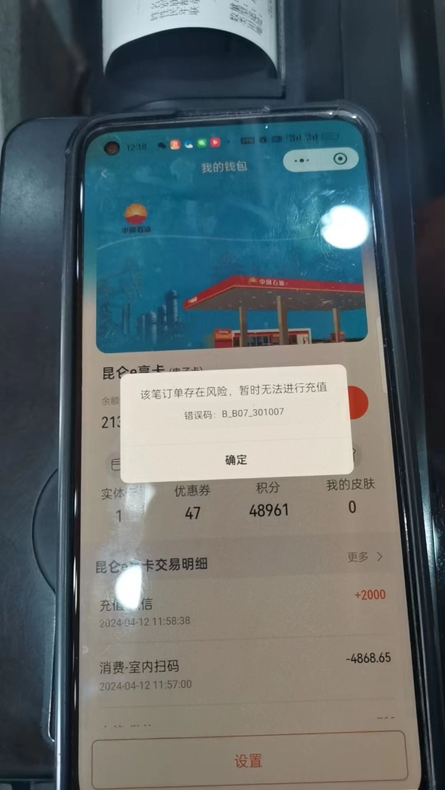65. 中油好客E站微信小程序-e享卡支付报错“校验账户消费限制信息【定点油站】失败”