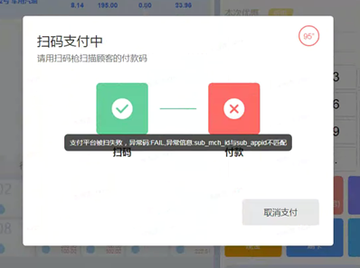 38. . 云闪付 支付报错“第三方支付平台被扫失败,异常码;异常信息支付失败”