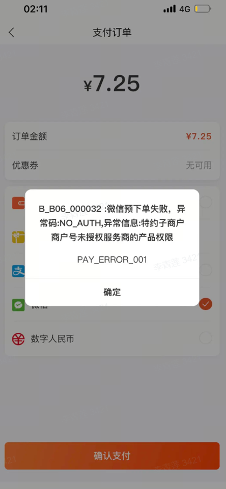 54. 支付报错‘P_B07_701012:状态:注册失败-[P_B07_705001]网络回复[HTTP]状态错误,HTTP Status; 401 PAY ERROR_001’