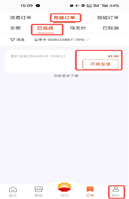 解决方案:实体卡开票类型为充值开的客户,可在线上开具充值发票。 操作路径:我的--充值订单--已完成--开具发票