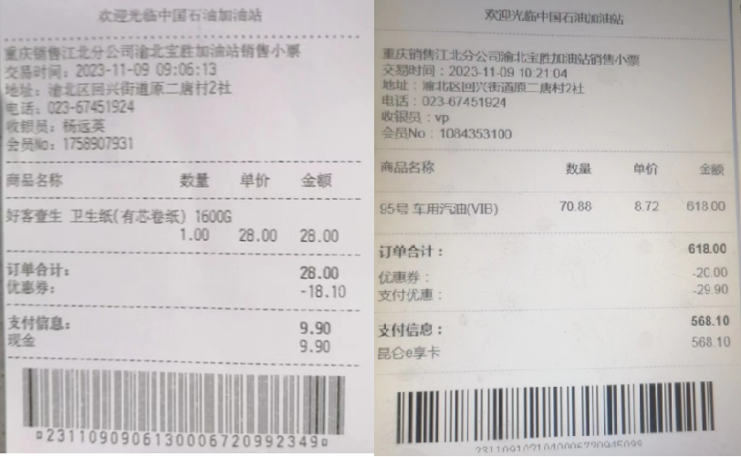 6. 加油后前台没产生点,站内不能确认具体金额。