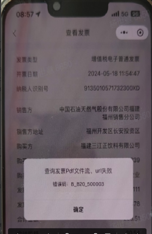 APP查询发票,查询发票Pdf文件流、url失败错误码:B_B20_500003