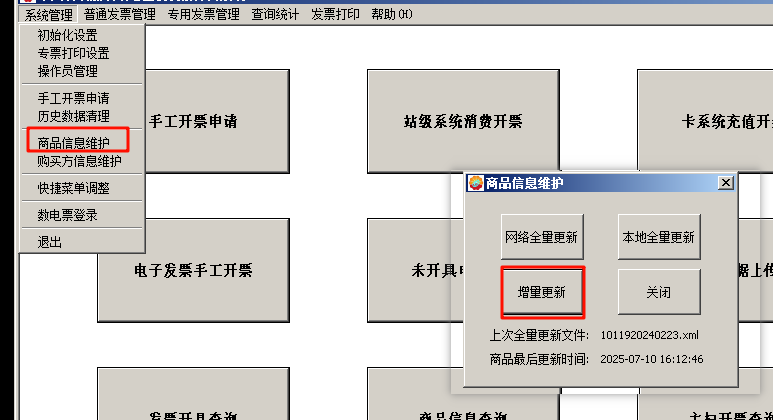 在开票客户端,用9999管理员登录,在-系统管理-商品信息维护-增量更新。 可能会等比较长时间,请耐心等待。