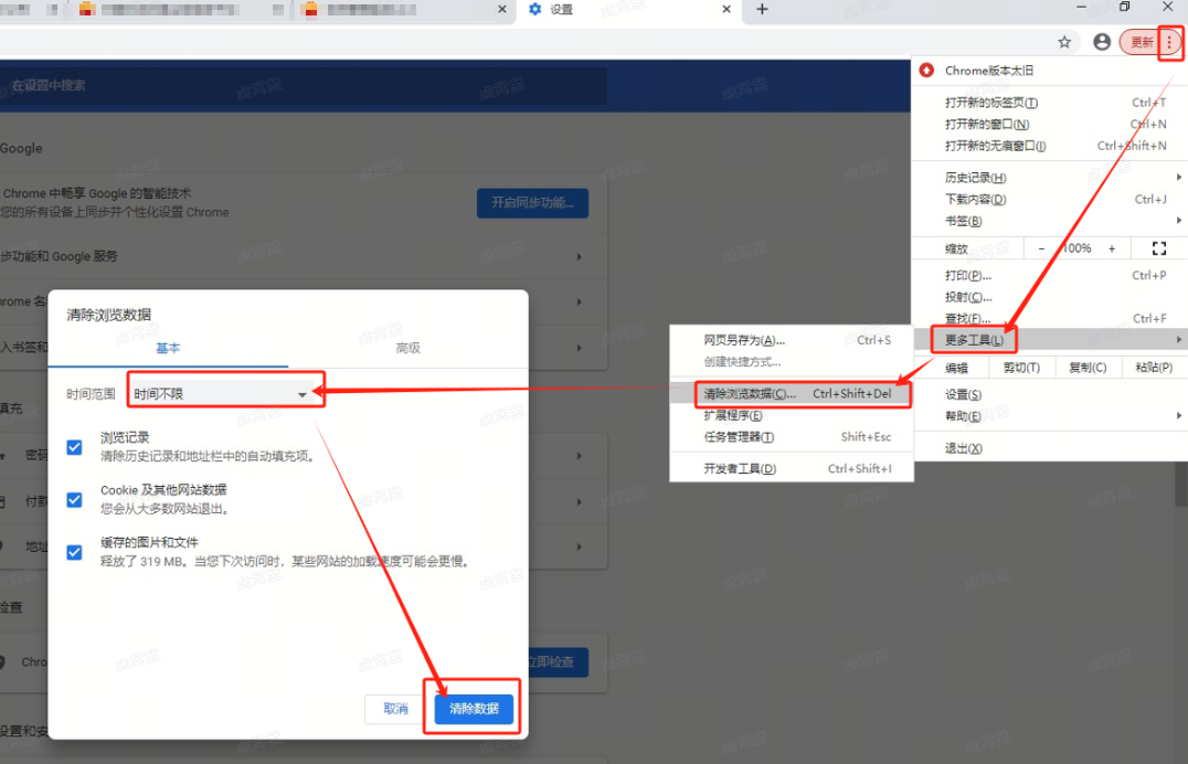 后台版本升级后,网页门户操作容易出现各种报错,需要清理浏览器缓存 以常用谷歌浏览器为例
