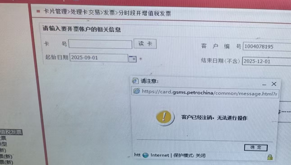 3.1 问题:操作员帮助客户通过中油智行开票,开票失败