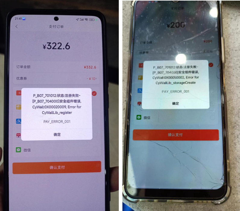 54. 支付报错‘P_B07_701012:状态:注册失败-[P_B07_705001]网络回复[HTTP]状态错误,HTTP Status; 401 PAY ERROR_001’