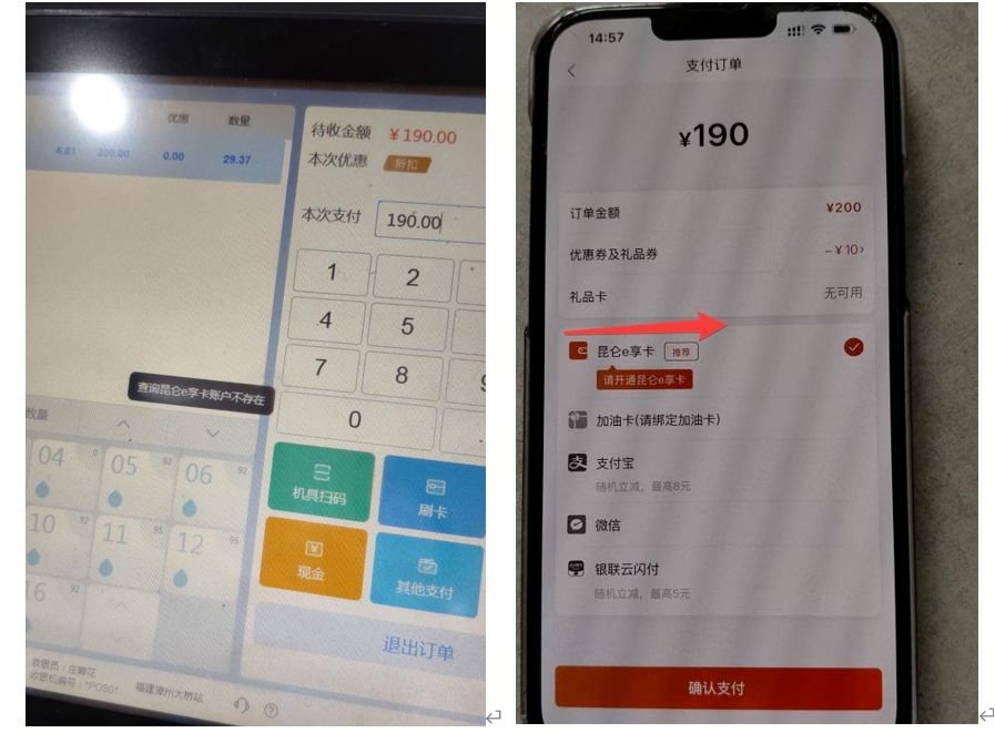 20. 顾客e享卡无法付款或者提示查询昆仑e享卡账户不存在
