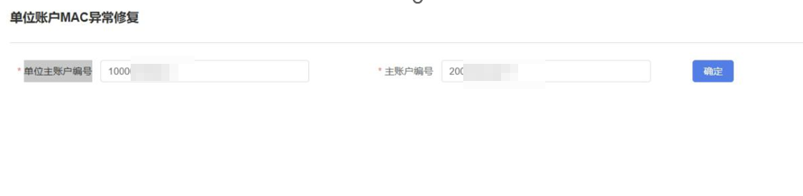 解决方案:通过员工账户管理通过卡号查询出单位主账户编号和主账户编号。填至单位账户MAC异常修复,点击确定 需总部400运维权限