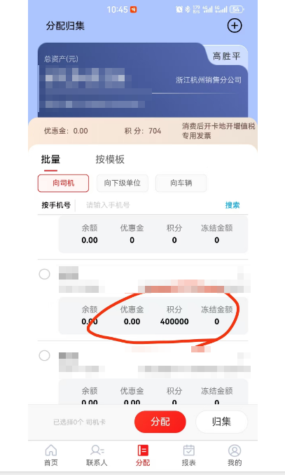 电子车队卡资金分配的时候提示员工信息不存在