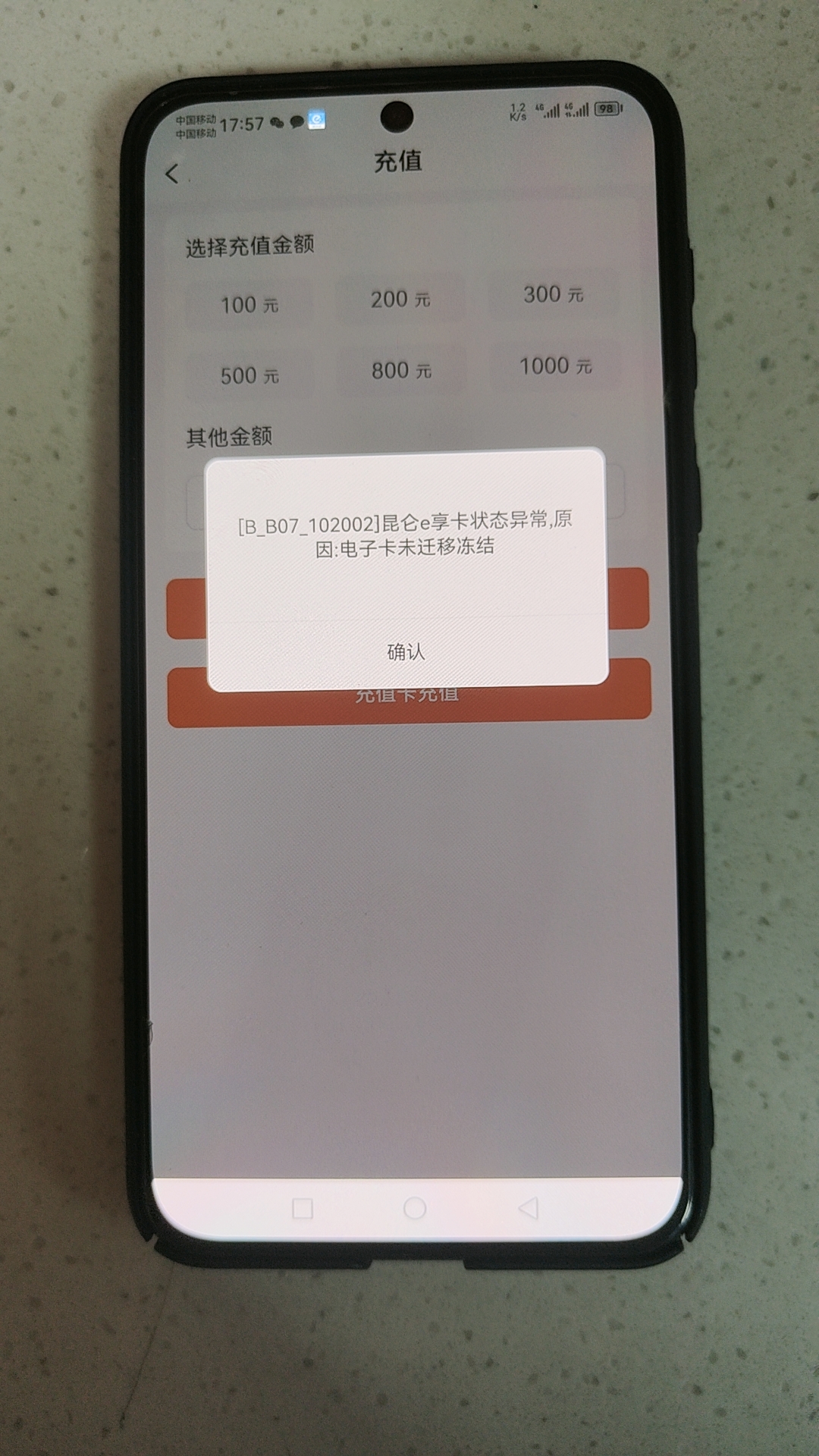 58. APP 报错提示:您的昆仑 e 享卡已被冻结,请联系客服解冻。